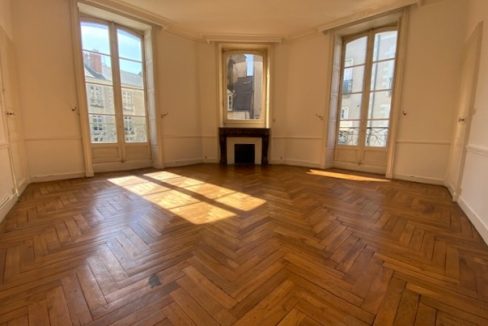 Nantes centre-ville, quartier Hôtel de ville, bel appartement ancien à rénover de 125 m² (120 m² Loi Carrez) avec hall d’entrée, séjour lumineux sur parquet…