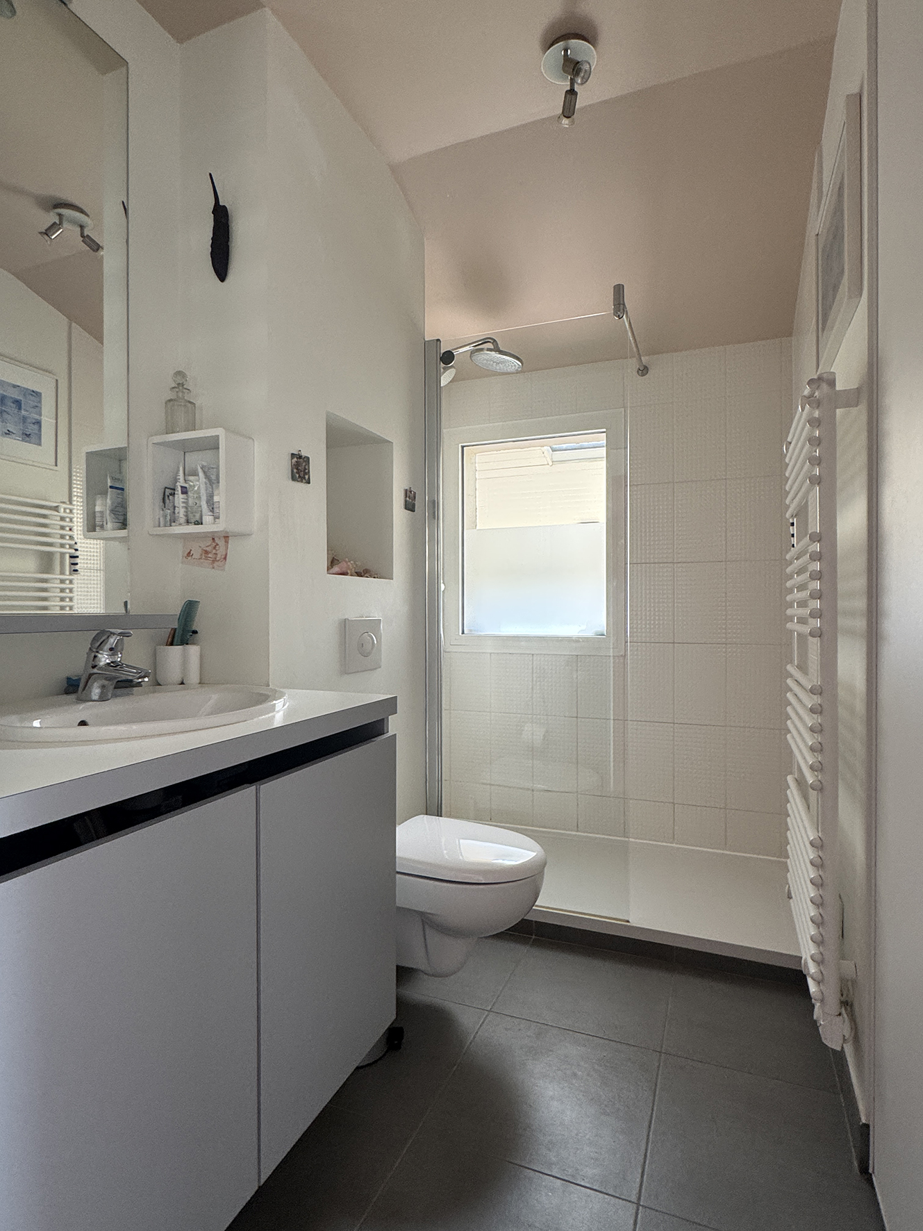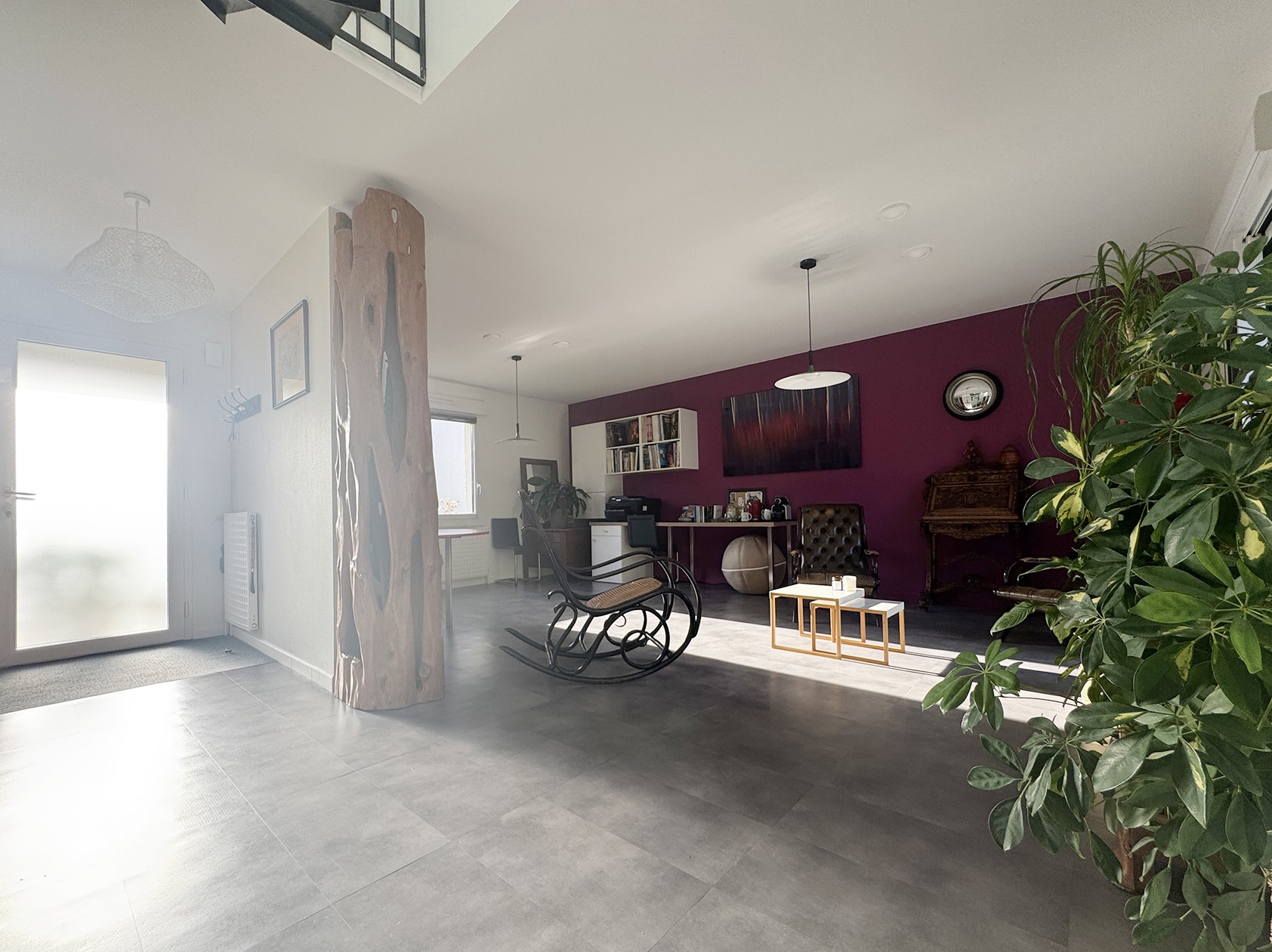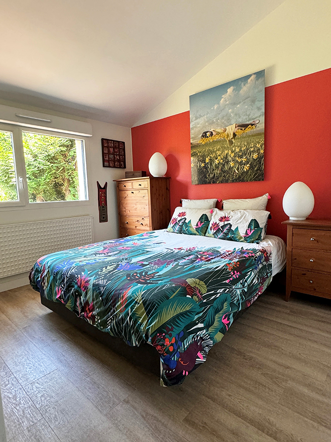 Nantes, au calme dans la vallée du Cens, à proximité du Petit Port, des commerces et des transports, jolie maison atypique rénovée de 110 m² (138 m² au sol) avec entrée, salon traversant de 31 m², salle à manger avec cuisine ouverte aménagée équipée, w.c, une chambre de 11 m², un bureau de 7 m², une salle d’eau avec w.c ; à l’étage : une salle de bains avec w.c, 2 chambres mansardées. DPE C chauffage individuel gaz.