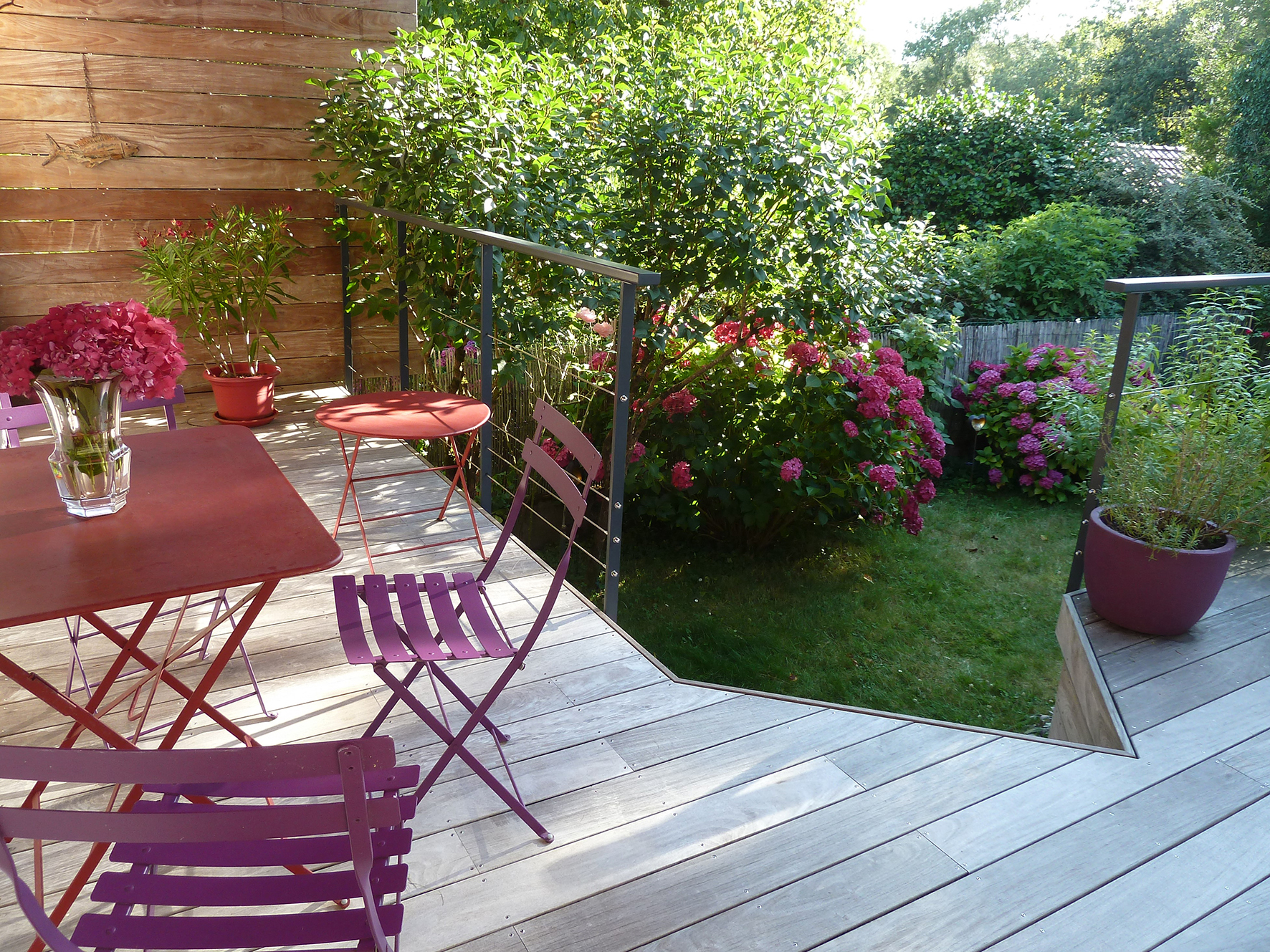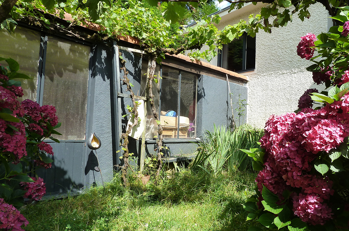 Garage (ou buanderie) de 15m², terrasses et jardin. Abri de jardin.