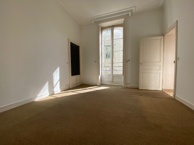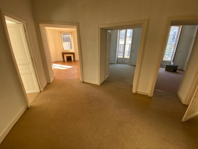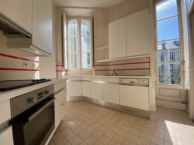 Nantes centre-ville, quartier Hôtel de ville, bel appartement ancien à rénover de 125 m² (120 m² Loi Carrez) avec hall d’entrée, séjour lumineux sur parquet plein sud avec jolie vue, cuisine attenante, w.c, salle de bains, 4 chambres. Deux greniers, une cave.